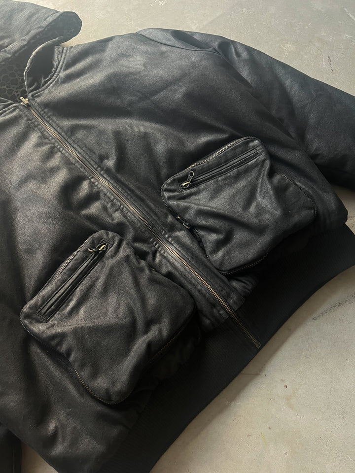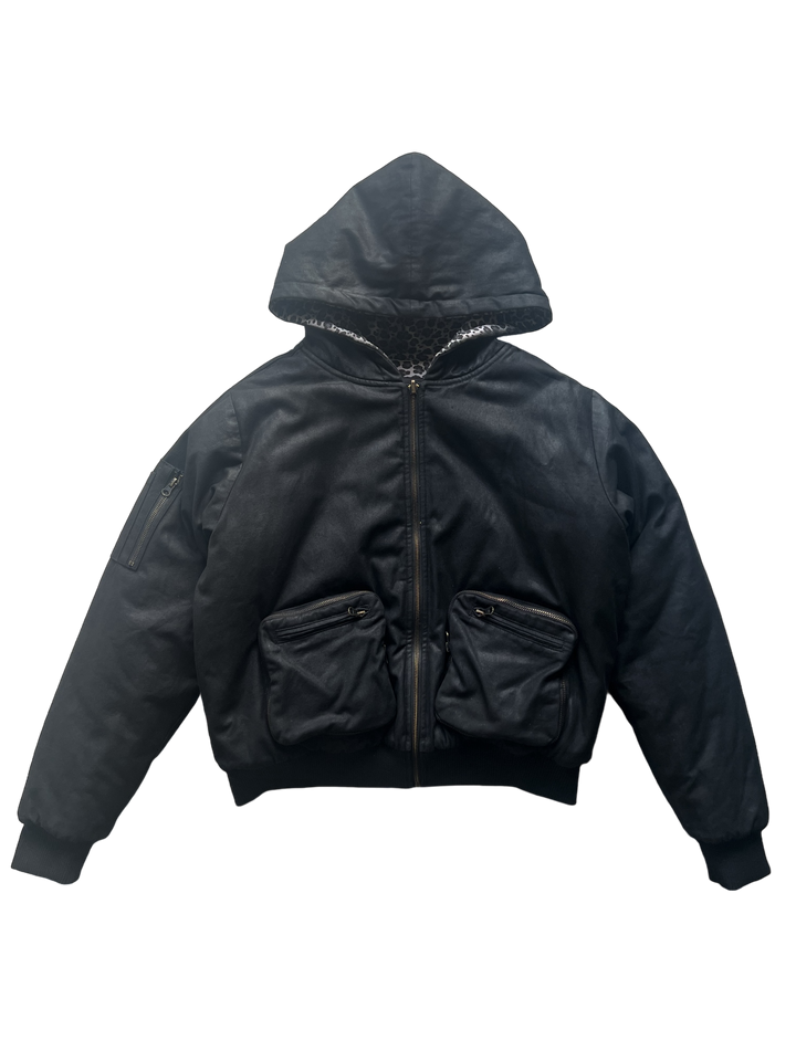 - Zipper cargo + buttoned inside pockets